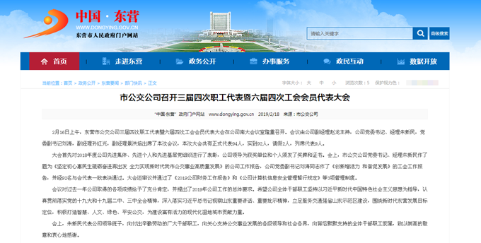2019年2月18日東營市政府網(wǎng)站報道